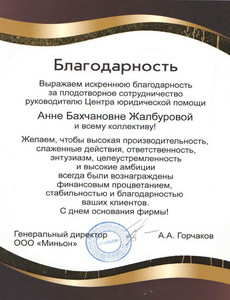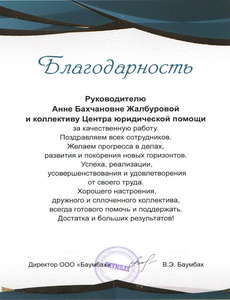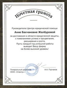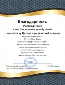 От всей нашей семьи выражаем огромную благодарность Центру юридической помощи и ее руководителю Анне, за выигранное в суде дело по расторжению договора на изготовление мебели на заказ!